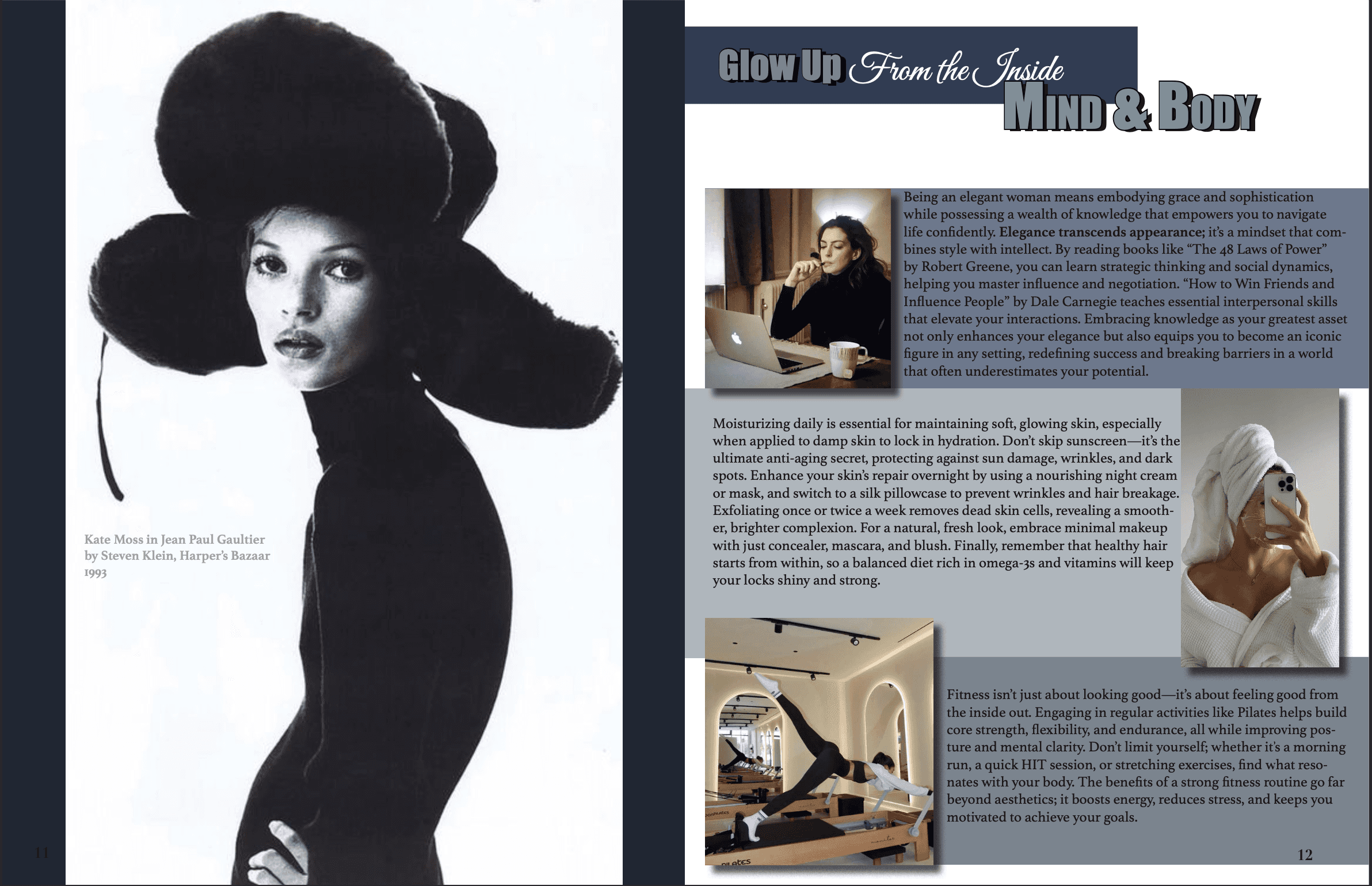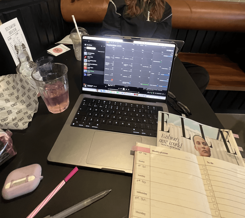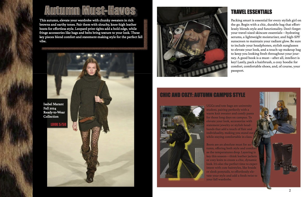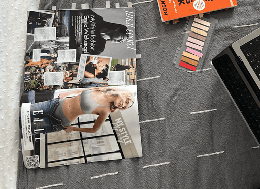 At the beginning of the project, I spent time working from cafés, flipping through issues of ELLE and other magazines for layout and print inspiration. This helped me understand how professional publications structure content and style.